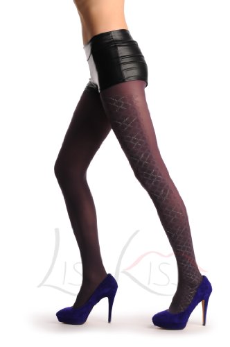 Soft Plum With Wide Opaque & Silver Lurex Side Seam - Violet Collants Taille Unique (34-42) by LissKiss