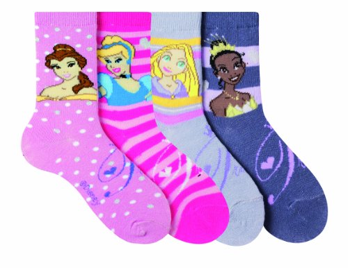 Read more Disney - Princesse - Lot de 4 Chaussettes de Ville - Fantaisie - Coton - Fille - Rose/Bleu/Rose/Parme - 19/22